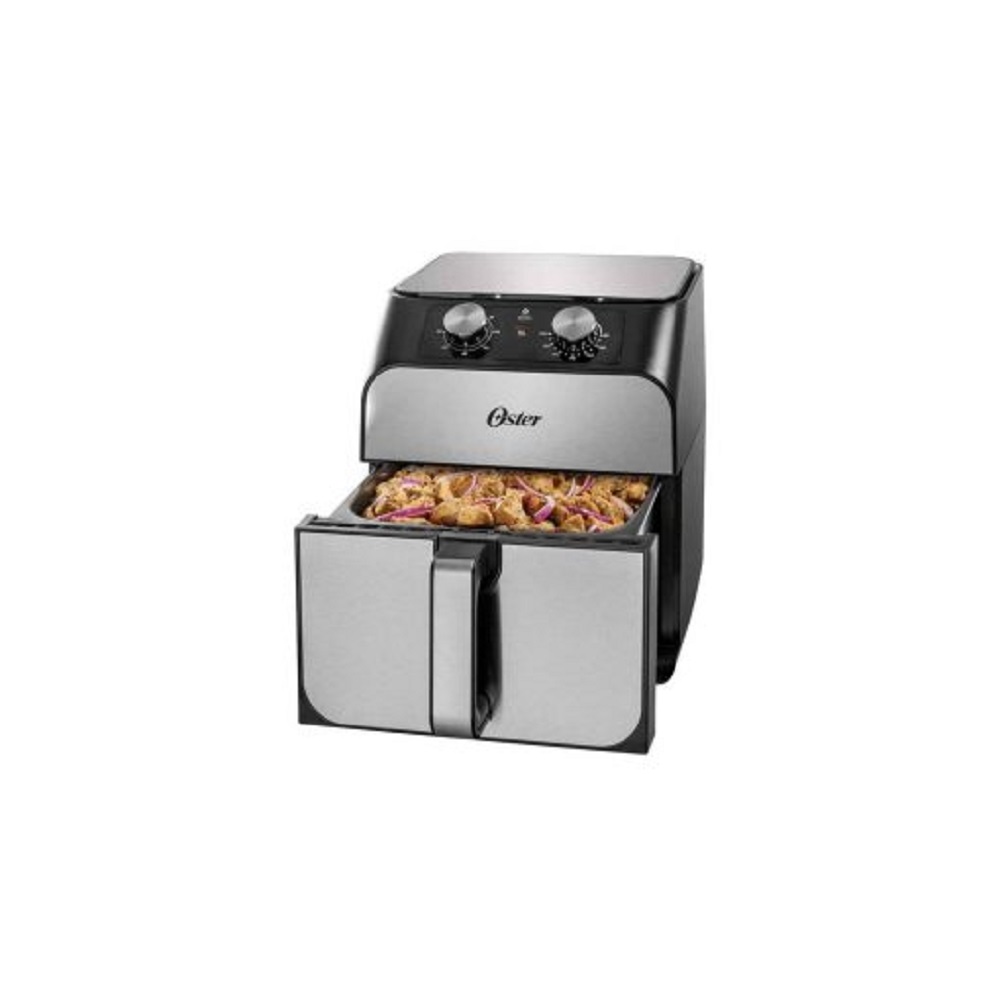 ¡Eleva la preparación de tus alimentos! La freidora de aire Oster® con capacidad de 6,8L ahora incluye una bandeja de freír con aire extraíble con revestimiento antiadherente DiamondForce para más espacio y una fácil limpieza. Con 20% mas capacidad*, esta freidora de aire te permite cocinar un pollo entero de hasta 2,5 kgs (5,5 lbs). Nuestro revestimiento DiamondForce está reforzado e infundido con partículas de diamante que forman una matriz estructural, creando un revestimiento 12 veces mas duradero y resistente a rayaduras** y hasta 15 veces mas fácil de limpiar**. Es un recubrimiento fuerte y superior al de cualquier otro de su tipo. Esto ayuda a que los alimentos tengan el sabor que te gusta y la grasa no se quede ni en ellos, ni en la rejilla. Por lo tanto son más sanos, y la rejilla es increíblemente fácil de limpiar. La freidora de aire cuenta con un panel manual con control de temperatura hasta 200 °C (400 °F) y un temporizador de 60 min con alerta sonora de «listo». Freír con aire utiliza hasta un 99,5% menos de aceite*** para comidas saludables y deliciosas.