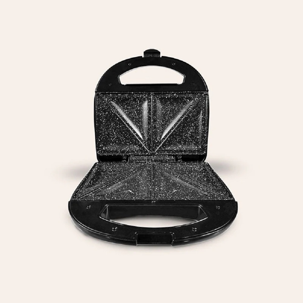 Esta práctica y eficiente sandwichera está diseñada para preparar hasta 2 sándwiches de manera rápida y uniforme. Con una potencia de 850 watts, calienta de manera eficiente, asegurando un tostado perfecto en cada uso. Su superficie de cocción antiadherente de ultra granito no solo facilita la limpieza, sino que también garantiza un dorado uniforme, ideal para disfrutar de resultados profesionales en casa.